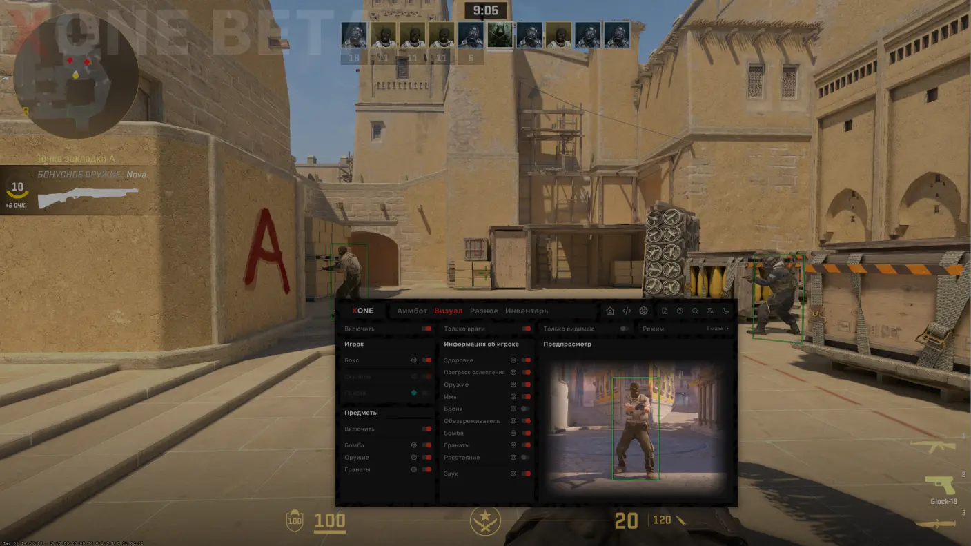 Эксклюзивный чит CS2 обеспечивает защиту от бана системой VAC и дарит возможность насладиться наилучшими игровым опытом. Наш актуальный бесплатный чит на КС 2 предлагает широкий выбор продвинутых функций, разработанных с учетом потребностей игроков: wallhack и aimbot, обходящие систему банов и траст фактор.
